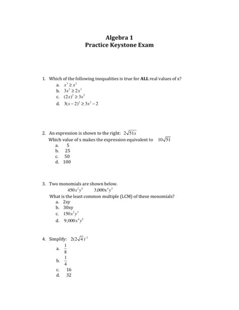 Read algebra 1 test questions rtf ManyBooks